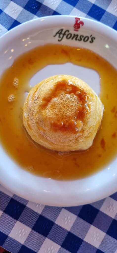 De sobremesa, Molotof,um pudim de claras com calda de caramelo. Ou o clássico pastel de nata. E para encerrar a refeição , diversos licores portugueses.