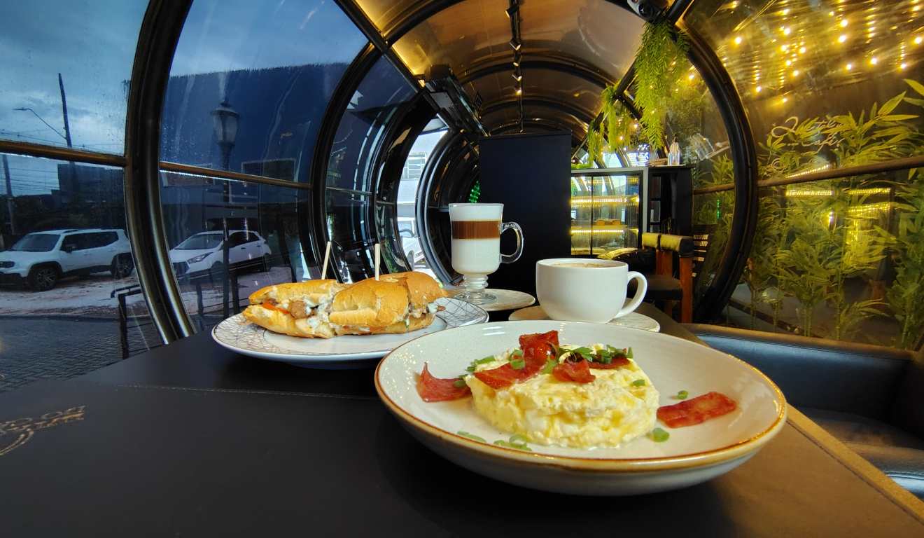 Café no Tubo: com ‘biarticulado’ e ‘ligeirão’ no cardápio, cafeteria oferece experiência inusitada