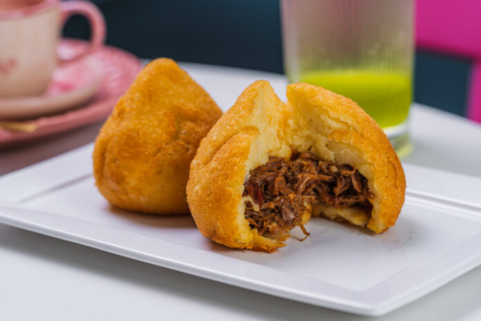 Um dos grandes destaques do novo momento é a coxinha de barreado (R$ 16,90). A receita une tradição e memória familiar: a massa segue a receita da mãe das irmãs confeiteiras July e Dafly Schneider, enquanto o recheio leva o barreado, prato típico do Paraná e especialidade do pai delas.