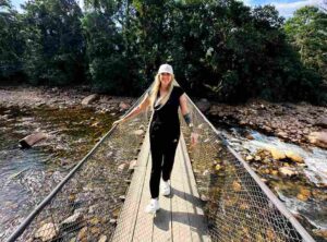 Não se engane, a travessia é uma aventura por si só! A ponte suspensa tem aquele charme rústico e, dependendo do número de pessoas atravessando ao mesmo tempo, a instabilidade é maior, e aí o desafio (e a diversão!) aumentam. É um mix de “Será que eu consigo?” e “Que vista incrível!”. Essa é a hora de registrar a paisagem, a mata, o rio, a luz e, principalmente, as reações dos seus amigos. O balanço faz parte da experiência.