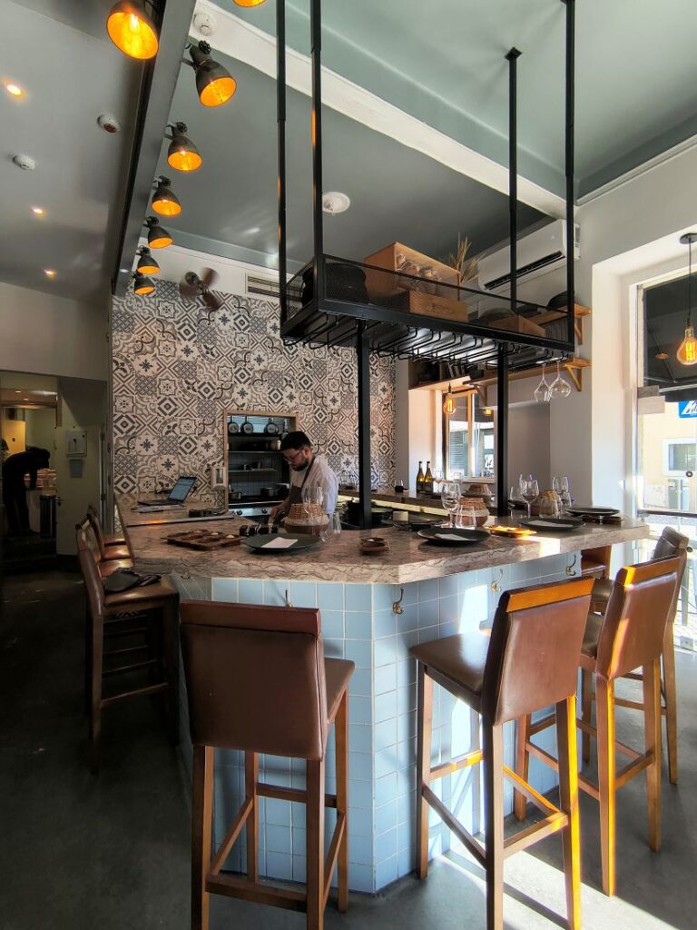 O espaço conta com mesas externas — ideais para dias ensolarados — e um interior organizado em formato de “U”. Particularmente, considero esse formato extremamente convidativo, pois aproxima os clientes e naturalmente estimula interações, conversas e até novas amizades. É um layout que traduz bem o espírito da gastronomia portuguesa: partilha, convivência e prazer à mesa.