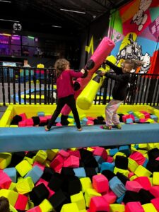 O parque conta com trampolins, halfpipe, piscina de blocos de espuma, desvios com obstáculos móveis e muita música. Quando as luzes se apagam e o ambiente fica neon, o clima de festa toma conta e vira o ponto alto da aventura.