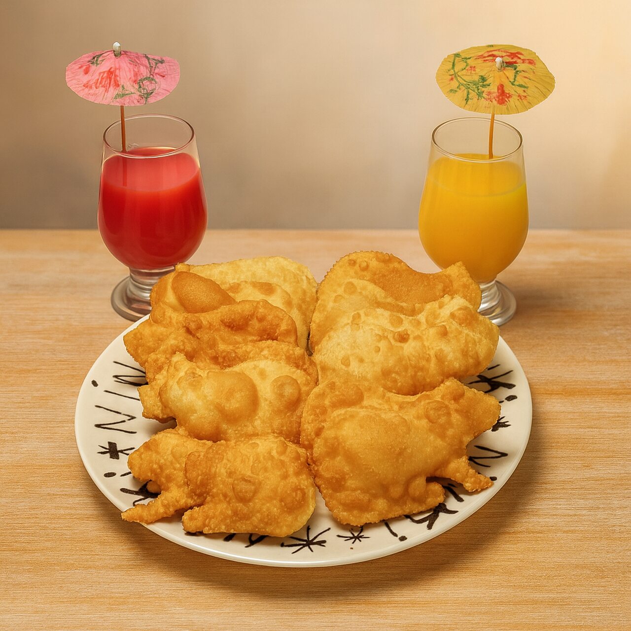 12 mini pastéis de capivara de queijo + 2 sucos naturais de 200ml – R$ 69,90