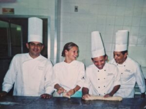 No meio desse mergulho, nasceu outra paixão – a gastronomia. Livia Trevisan foi uma das primeiras mulheres a cursar Gastronomia em São Paulo e teve a honra de ser a primeira estagiária do icônico Fasano. A cozinha, assim como as piscinas, exigia técnica, suor e dedicação!
